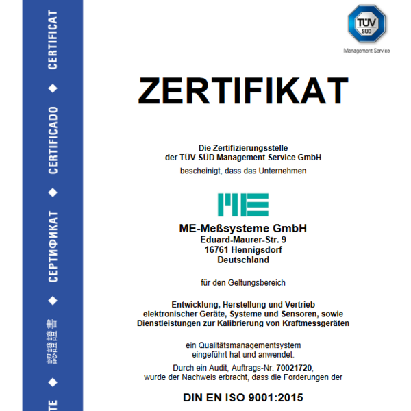 Die ME-Meßsysteme GmbH entwickelt und produziert Sensoren und Auswerteelektroniken zur Kraft-, Dehnungs- und Drehmomentmessung.