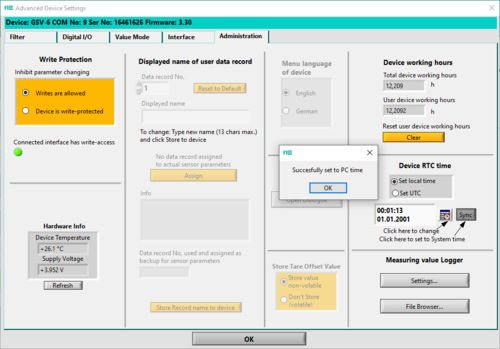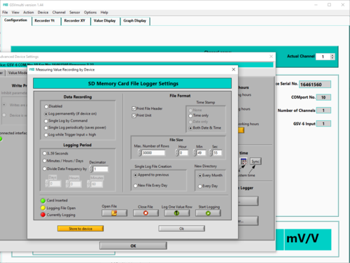 Die Daten werden als kommaseparierte Textdatei abgespeichert. Sie können mit der Software GSVmulti in ein TDMS Format umgewandelt werden, und in der Software GSVmulti grafisch dargestellt werden.
