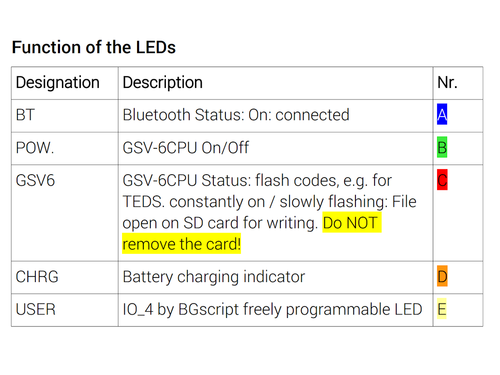 Der GSV-6BT kann parallel zur Messdatenerfassung über Bluetooth oder autonom, ohne Bluetooth Verbindung als Datenlogger zur Aufzeichnung auf SD Karte eingesetzt werden.