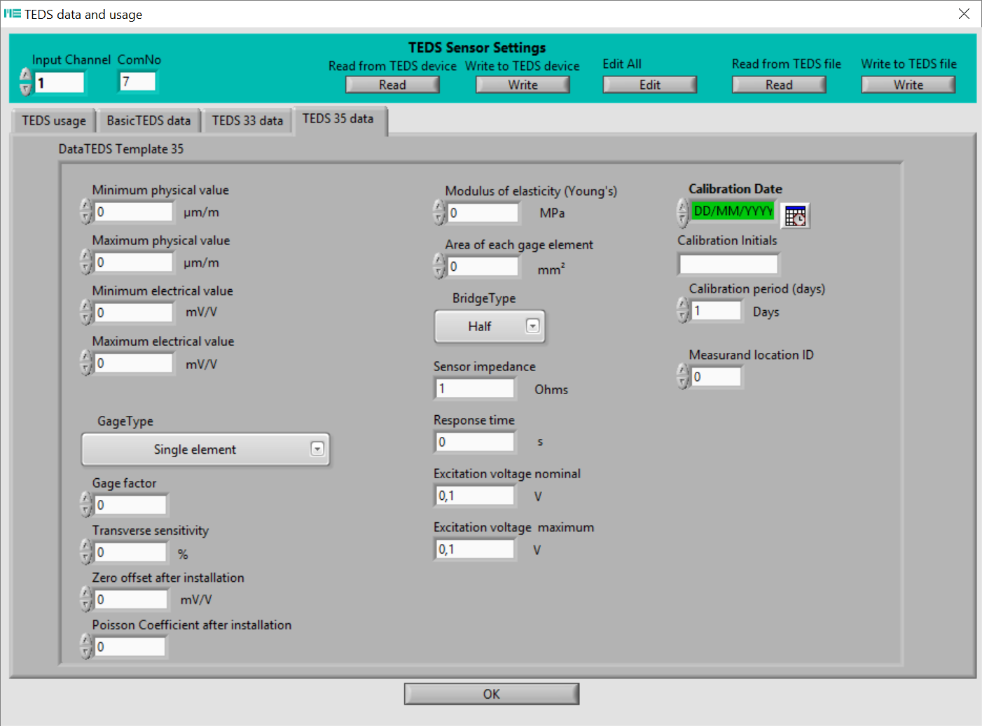 TEDS Template 35 für Anwendungen mit Dehnungsmessstreifen