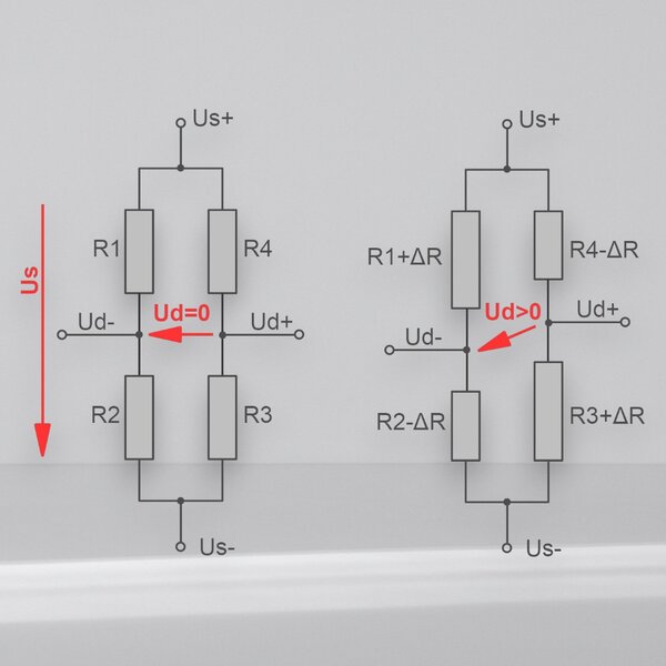 Wiring diagrams for compensating mechanical disturbances for the most common loading cases, such as bending, torsion, normal force, shear strain.