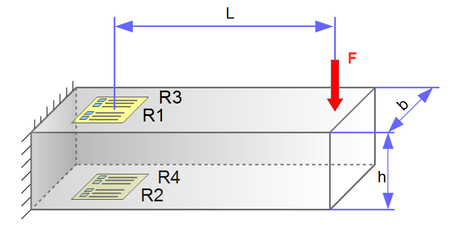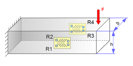 Temperature-related expansion and expansion due to bending or axial force are compensated for with this circuit. Only the torsion is recorded.