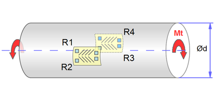 To measure the torsion, strain gauges with a +45/-45 grid arrangement are used.