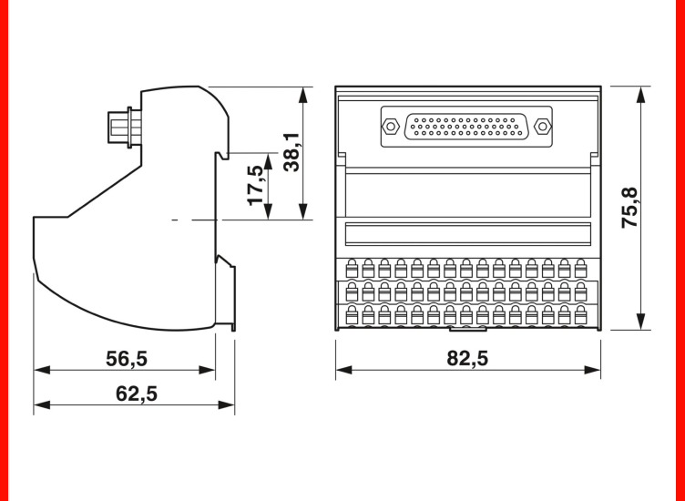 VARIOFACE module, with push-in connections and high-density D-SUB miniature socket strip, for mounting on NS 35 mounting rails, number of poles: 44