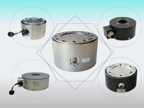 These K6D and F6D sensors are suitable for measuring forces and moments in the 3 directions of the coordinate system. They consist of a total of 6 full-bridge strain gauges. The 6 measuring signals are made available via a 24-pin connector for further processing with a measuring amplifier.