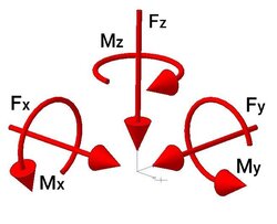 A calibration matrix is required to calculate the forces and moments from the 6 measurement signals. The calibration matrix establishes the relationship between the 6 measurement signals and the forces Fx, Fy, Fz, and the moments Mx, My, and Mz (ba-k6d.pdf). By using special calibration matrices (Matrix Plus), the accuracy can be optimized and crosstalk can be minimized for a specific load case.