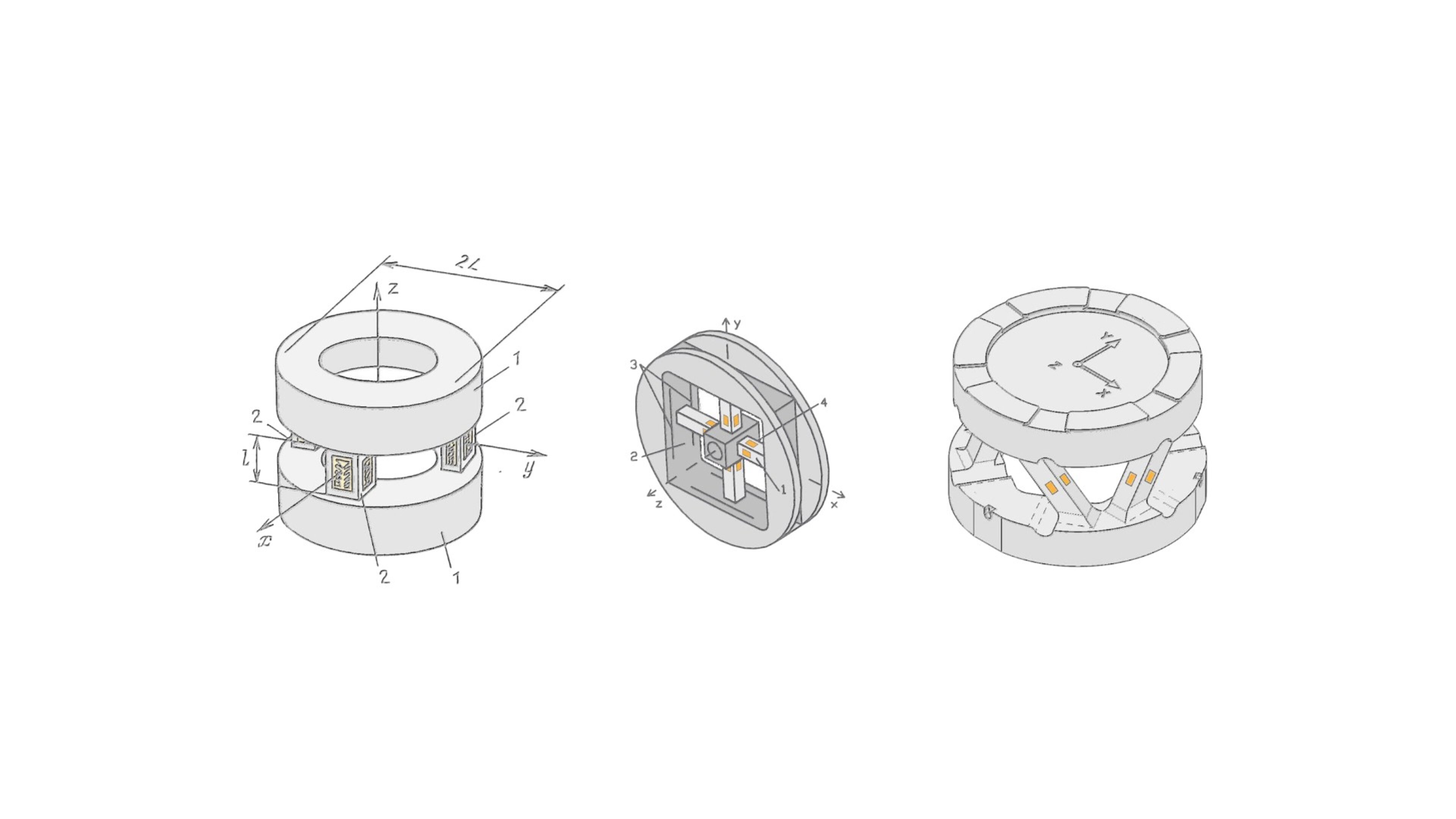 The design of the deformation body offers further possibilities for separating the load components, e.g., through (isotropic or anisotropic) spring joints and parallel guides.