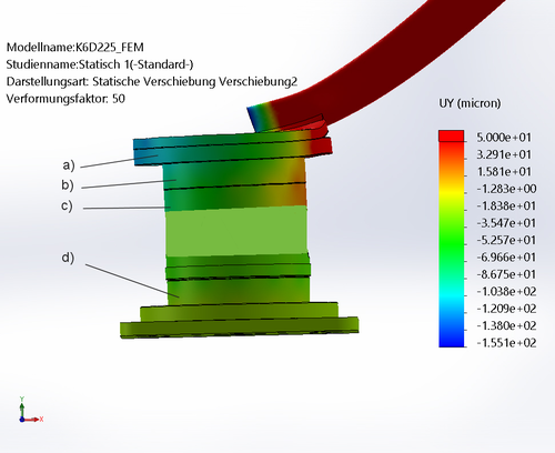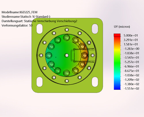 In addition to the force introduction on the circular ring, the flatness and rigidity of the connection flange are important parameters. The material should be high-strength aluminum or tool steel 24CrMo4 or C60 tempered or high-strength stainless steel 1.4542. Plastic flanges from the 3D printer are unsuitable!