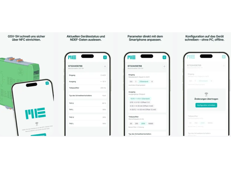 A key advantage: The GSV-5H is designed so that important parameters can be conveniently configured via the "GSV-5H" app. This allows users to flexibly adapt the amplifier to different requirements – for example, switching the analog output to 4…20 mA, selecting the offset to suit further processing, or precisely adjusting the cutoff frequency to the dynamics of the application. Four input sensitivities are also available, making the GSV-5H suitable for various strain gauge sensors. With two threshold outputs and a tare function via control line, it is also ideally suited for practical automation tasks.