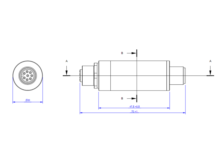 The electronic data sheet of the sensor can be read via a TEDS interface. The measurement amplifier scales the output signal to the end value of the set output signal using the TEDS interface.