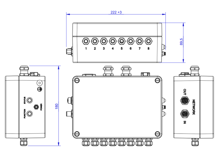 • Outputs 1x USB port, 8x analog output ± 10V, 4 ... 20mA configurable, 1x UART/RS232/RS422