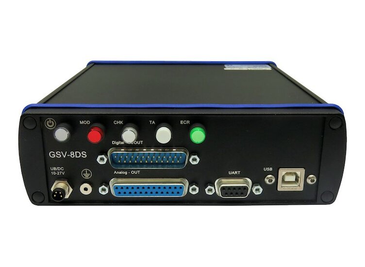 The 8-channel measuring amplifier GSV-8 is characterized by particularly high resolution at data rates from 1 Hz to 48000 Hz.