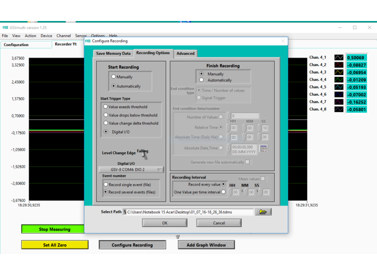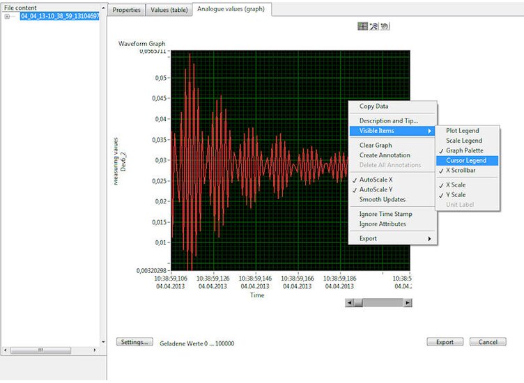 3. During the measurement with Yt- or XY-Recorder it is possible to give notes (annotations) to the measured values, which are saved with the *.tdms files.