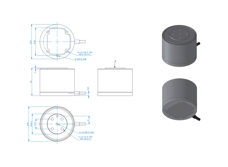 The K3D35 3-axis force sensor is suitable for force measurement in three mutually perpendicular axes.