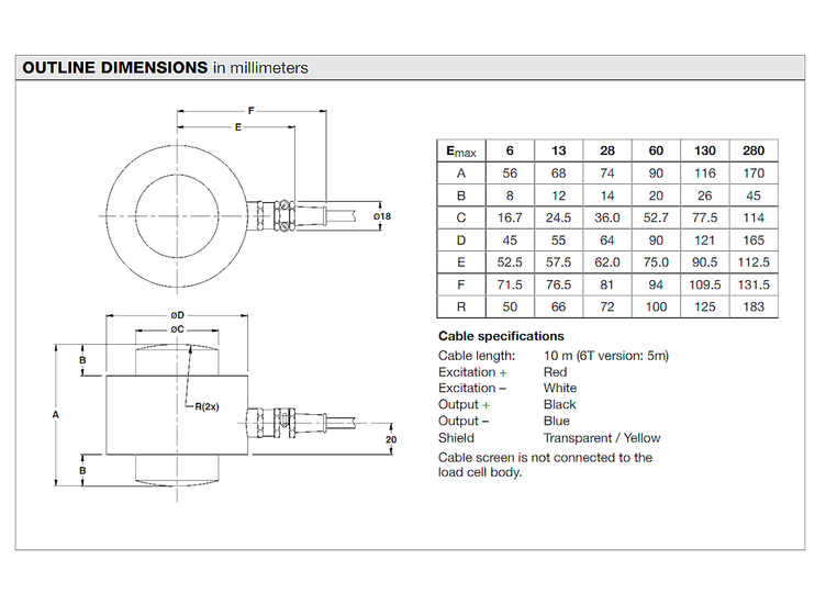 • force transmission: 2x load button R50, Ø 16,7 h7 mm x 8 mm