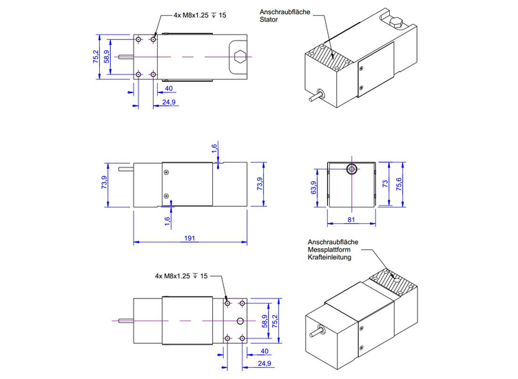 The force sensor KD 191 is used in weighing platforms and in test beds. It allows the