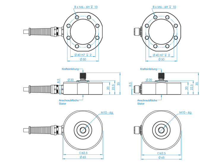 • a central M10 external thread for force introduction for the 2 kN and 5 kN variants
