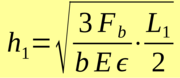 The calculator calculates the required beam height h1 on the measuring grid for a given force and a given output signal of the Wheatstone bridge.