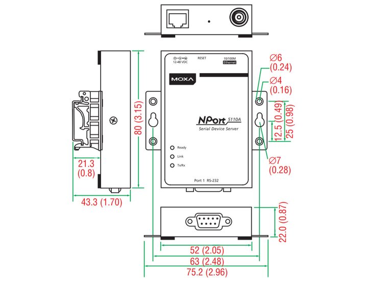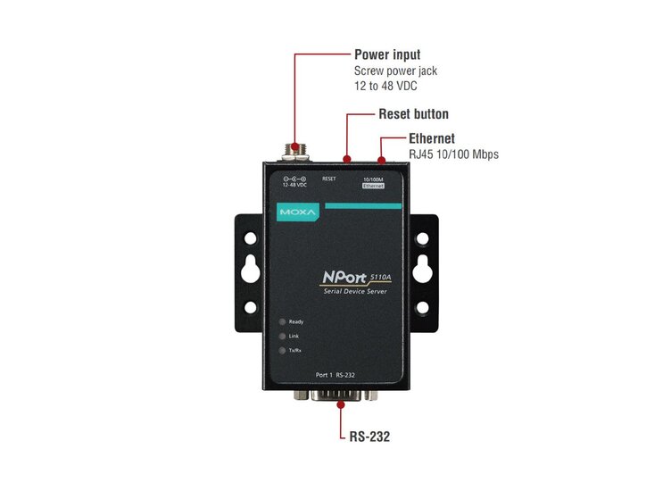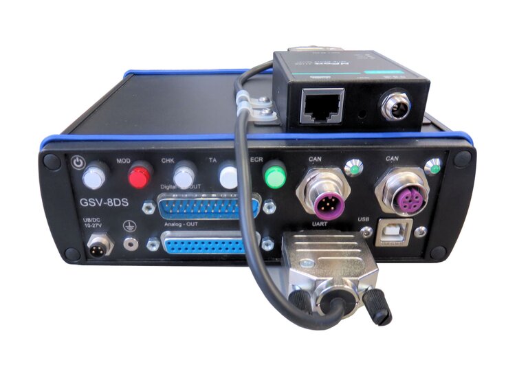 The nport 5110A device server expands the GSV-8 with a TCP / IP network interface. The device server is mounted with two screws on the GSV-8 housing. The RS232 interface is connected to the device server with a supplied null modem cable.