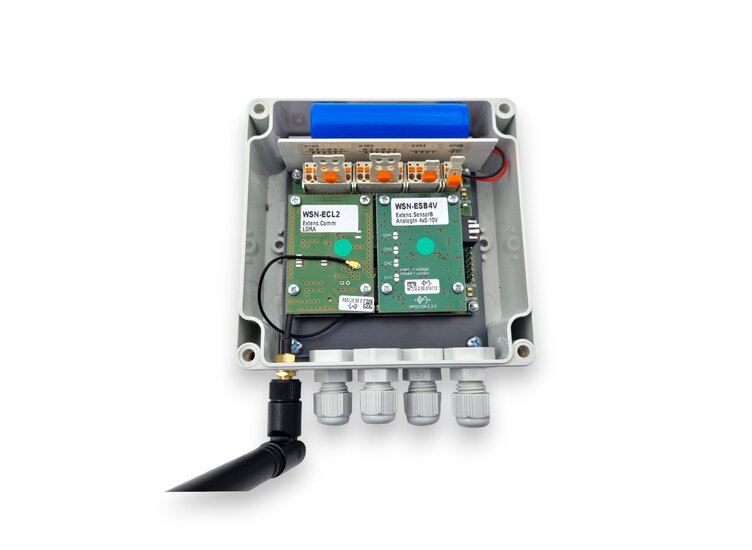 The complete system, consisting of one or more "nodes", a gateway and the cloud service, is supplied by ME-Meßsysteme GmbH and can be set up and put into operation on request, including the installation of the sensors. A "private" LoRaWAN radio network is used, which is provided by the wisenode gateway.